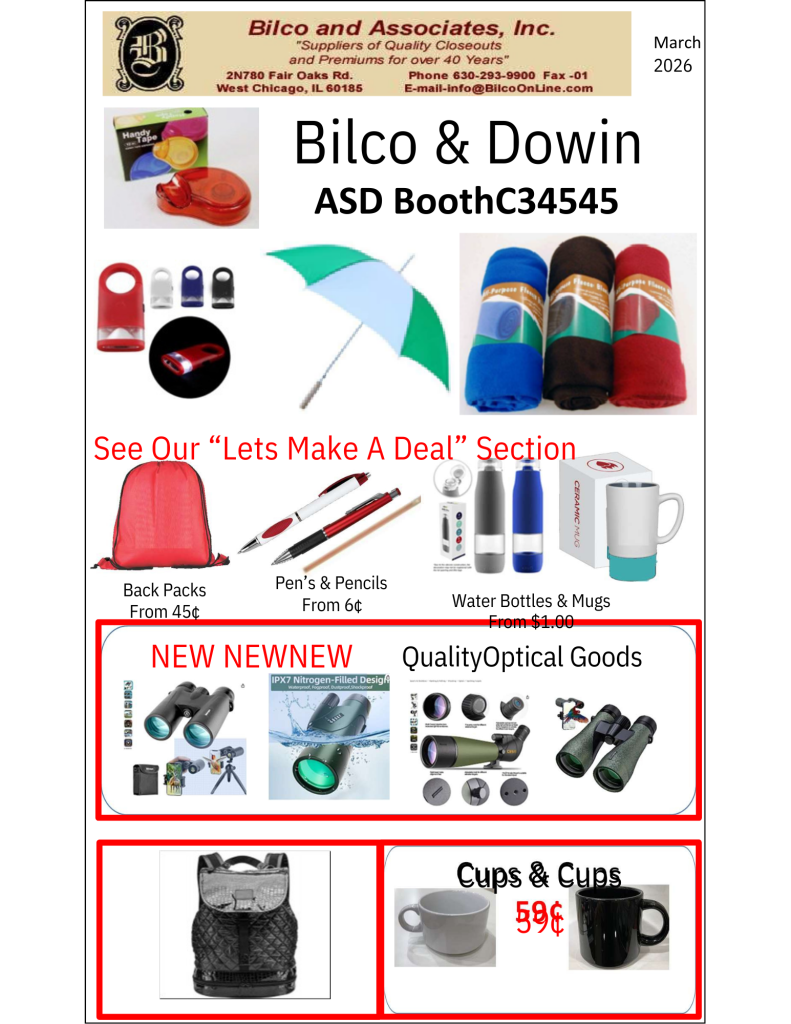 Welcome to BilcoOnLine.com, the wholesale website of Bilco & Associates, Inc. Bilco was founded in the spring of 1977 to provide quality closeouts and premiums to all types of companies, large discount chain stores, Dollar Stores, Redemption Centers, Flee Market and Family Owned Shops.